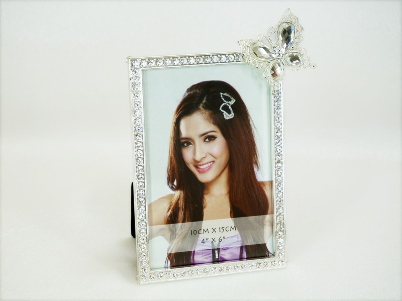 100524 Фоторамка металлическая 10-15 бабочка со стразами PLATINUM PF10052-4