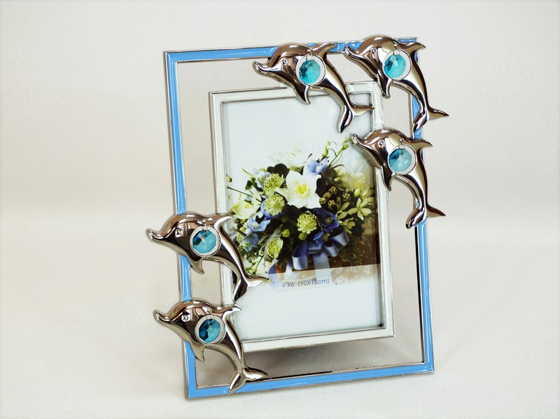 10149 Фоторамка 10*15 дельфины.со стразами металлическая PLATINUM