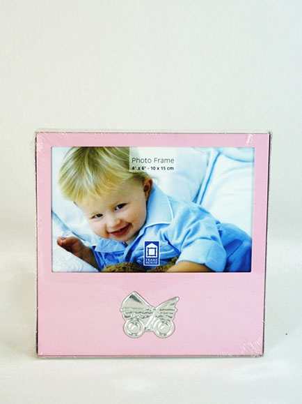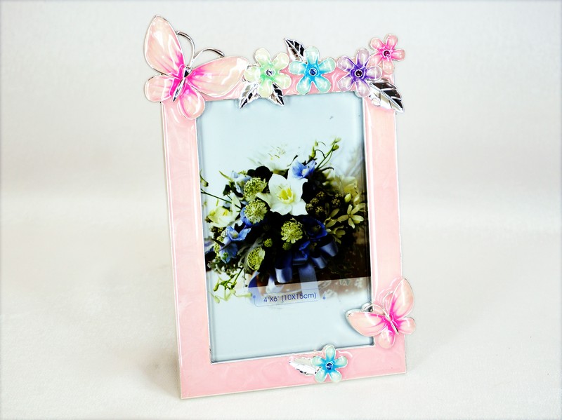 3513 Фоторамка 10-15 бабочки и цветы розовая со стразами металлическая PLATINUM