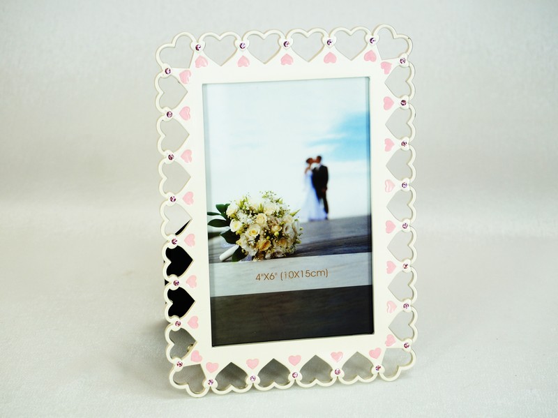 93264 Фоторамка 10-15 розовые сердца со стразами металлическая PLATINUM