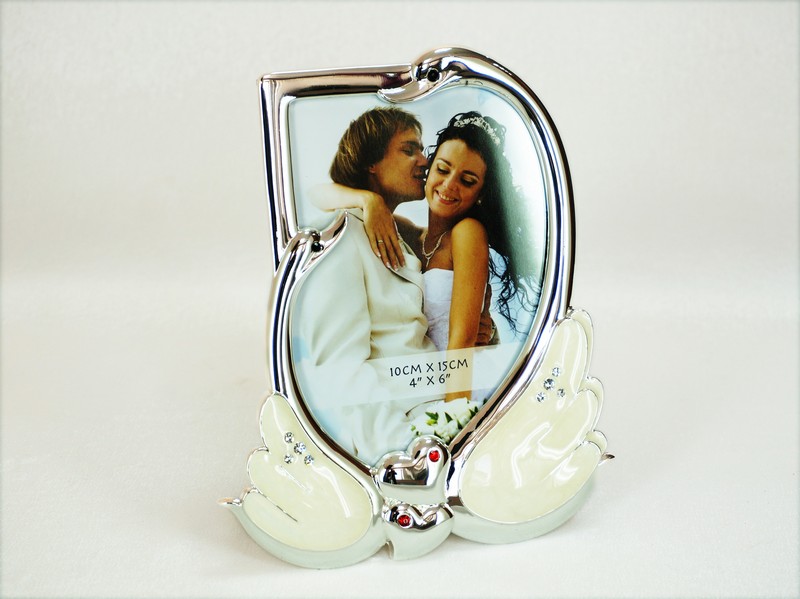 98424 Фоторамка 10-15 лебеди со стразами металлическая PLATINUM